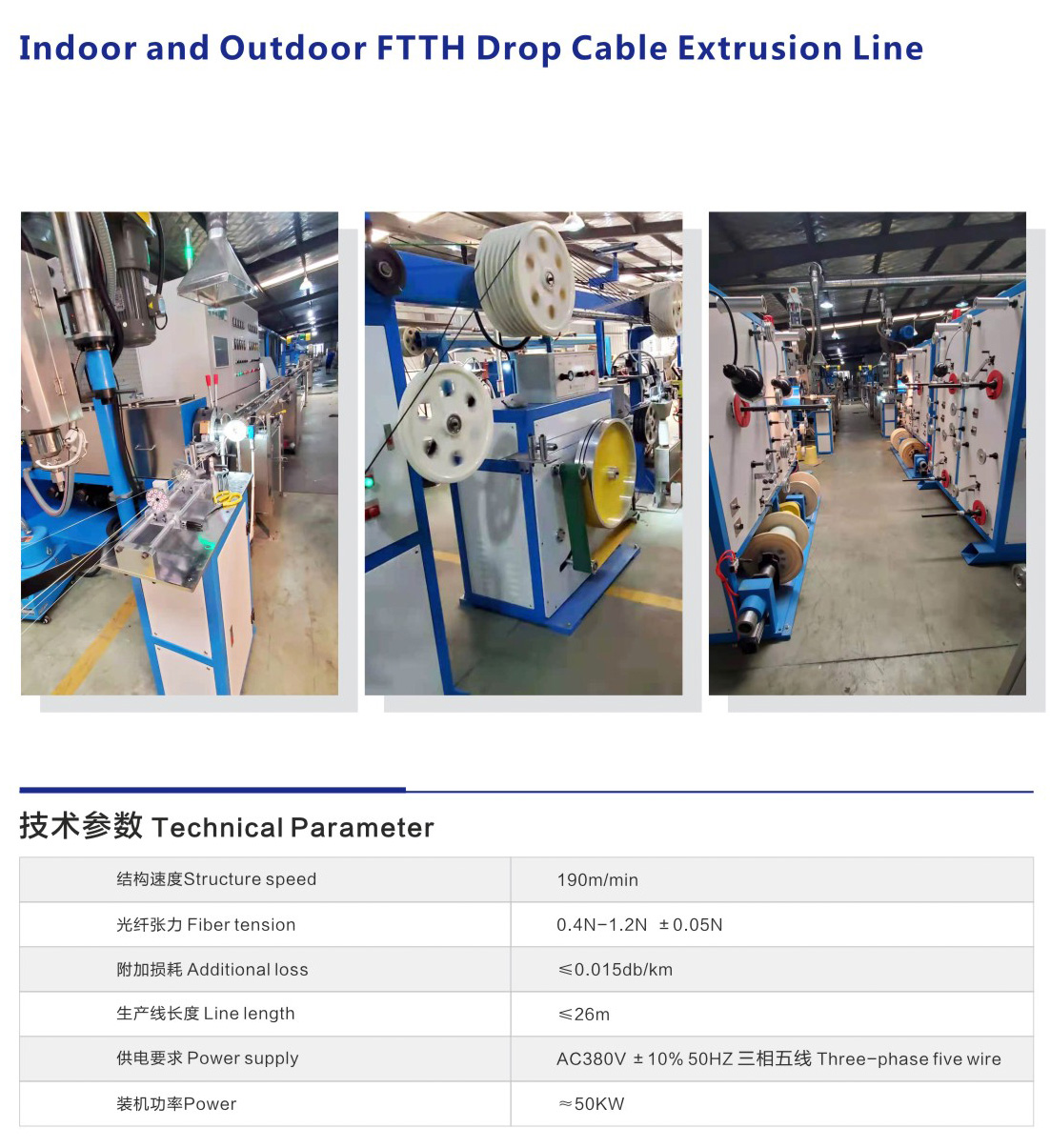 本設(shè)備主要用于FTTH普通蝶形光纜的擠出生產(chǎn),可生產(chǎn)3.0*2.0mm、5.0*2.0mm等各種規(guī)格的蝶形光纜。
